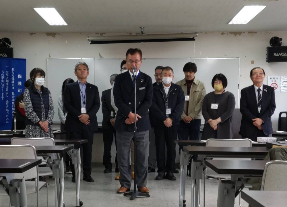 11月14日 活動センターにて、表彰伝達式と研修会を執り行いました。矢澤観察官からひとりひとり表彰状が手渡された後、表彰者代表として法務大臣表彰を受賞された平田副会長より挨拶を賜り、華やかな雰囲気で研修へと進みました。今回の研修は、生活環境調整報告書と保護観察経過報告書の書き方について、確認事項と作成のポイントを的確にご指導いただき、対象者への対応や措置に直結する貴重な行政文書であることを参加者全員、再認識することができました!!